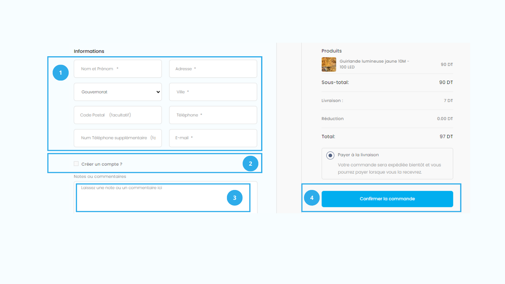 Une fois que vous avez rempli tous les champs requis, cliquez sur le bouton "Confirmer la commande" pour finaliser votre achat..
